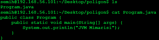 Program.java yı derlemek için javac aracını kullanıyoruz. Derledikten sonra Program.class adında bytecode dosyası oluşuyor.